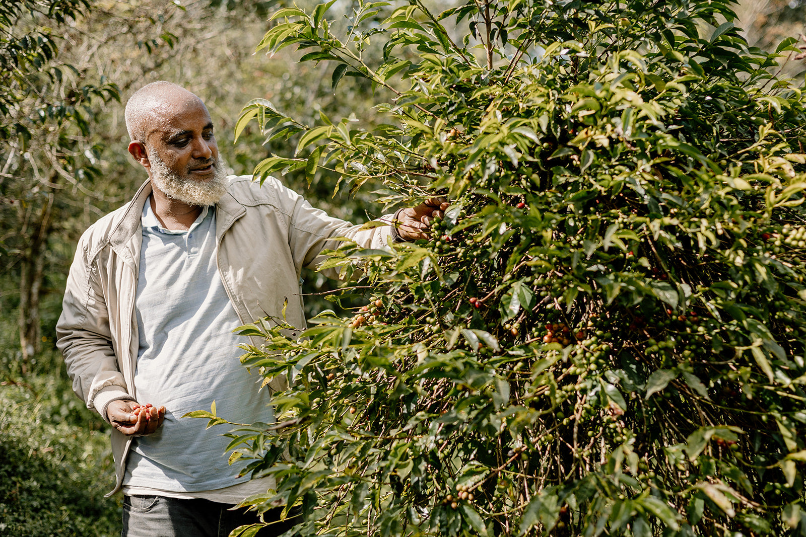 Mensur Abahika es un productor de café de la región de Jimma, en Etiopía, conocida por sus cafés naturales y lavados de alta calidad. Es un miembro clave del Tokuma Farmer Group, una cooperativa que permite a los agricultores comercializar colectivamente su café, compartir conocimientos y mantener el control sobre su producto desde la finca hasta la exportación. Su finca de 18 hectáreas está situada en el distrito de Gomma, a una altitud de aproximadamente 2000 metros.