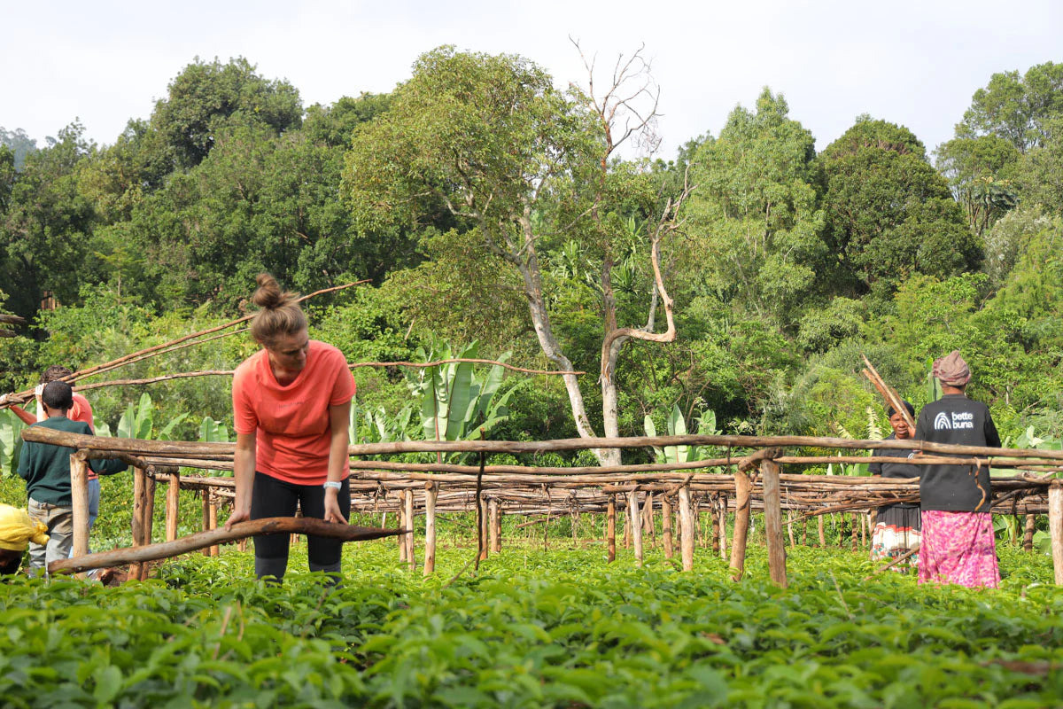 La producción de café en Etiopía representa aproximadamente un tercio del PIB del país, pero más del 90 % de las personas que trabajan en el sector cafetero no ganan un salario digno. Bette Buna se ha propuesto cambiar esta situación en su comunidad. Forman a los agricultores locales para mejorar la salud del suelo, restaurar los sistemas agroforestales y comprender la importancia de recolectar solo cerezas maduras. Las cerezas maduras pesan más y producen café de mayor calidad, lo que significa que los agricultores cobran más tanto por peso como por primas de calidad. Quizás lo más impresionante es que Bette Buna distribuye más de 350 000 plántulas sanas cada año desde su vivero interno. Estas plántulas son variedades adaptadas al cambio climático y, de media, los agricultores que las plantan ganan al menos 2 dólares por plántula al año una vez que los árboles maduran. Esto representa un impacto económico anual de más de 650 000 dólares en una zona donde la renta media por hogar es inferior a 50 dólares al mes para una familia de nueve miembros. Igualdad de oportunidades en el empleo y cadenas de suministro transparentes Bette Buna es una empresa que ofrece igualdad de oportunidades, algo poco habitual en una cultura que no suele ofrecer trabajos significativos a personas con capacidades diferentes o discapacitadas. Su vivero emplea a personas con discapacidades (en particular, personas sordas), familias de personas con discapacidades y otros grupos marginados, como madres solteras, y ofrece un empleo flexible que se adapta al cuidado de los niños en un contexto agrario. Su compromiso con la trazabilidad es excepcional. Cada lote se realiza un seguimiento específico y mapea a todas las personas involucradas en cada etapa de la producción, desde los recolectores de cerezas hasta los procesadores y los operadores de molinos. Este nivel de transparencia es casi inaudito en Etiopía. Garantiza no solo que recibamos el mismo café que aprobamos antes del envío, sino también que las personas que lo producen ganen salarios justos. Todas las personas involucradas añaden valor y son valoradas. Esta transparencia también posiciona a Bette Buna como una empresa totalmente preparada para el cumplimiento de la EUDR, lo que constituye un sólido ejemplo de producción de café ética y transparente.